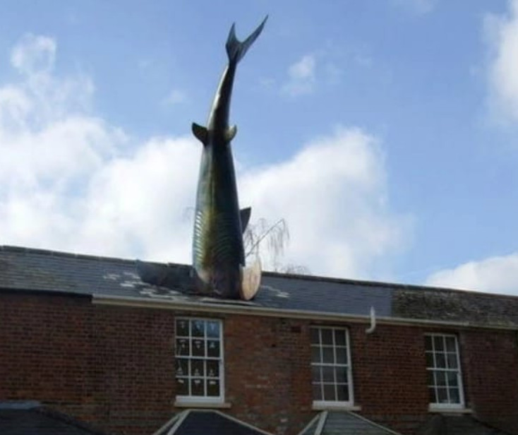 Из крыши торчит огромная акула! Зачем и с какой целью – история умалчивает. Зато дом явно выделяется из сотен других.