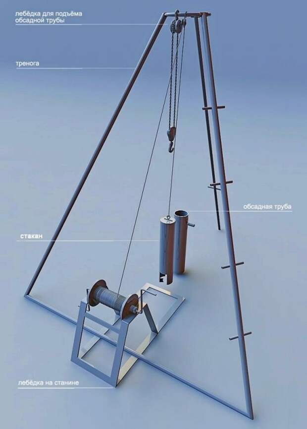 Для проведения работ потребуются: бур, бурильная вышка, трубы обсадные, штанги, лебедка. Если вы собираетесь бурить неглубокую скважину, то вполне можно обойтись и без бурильной вышки, так как она необходима только для того, чтобы доставать бур со штангами с большой глубины.