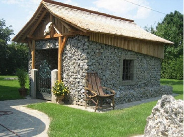 - Не нужно долго играться с кирпичами, ведь можно использовать габионы. Гараж, сарай, беседка — эта конструкция годится для всего.